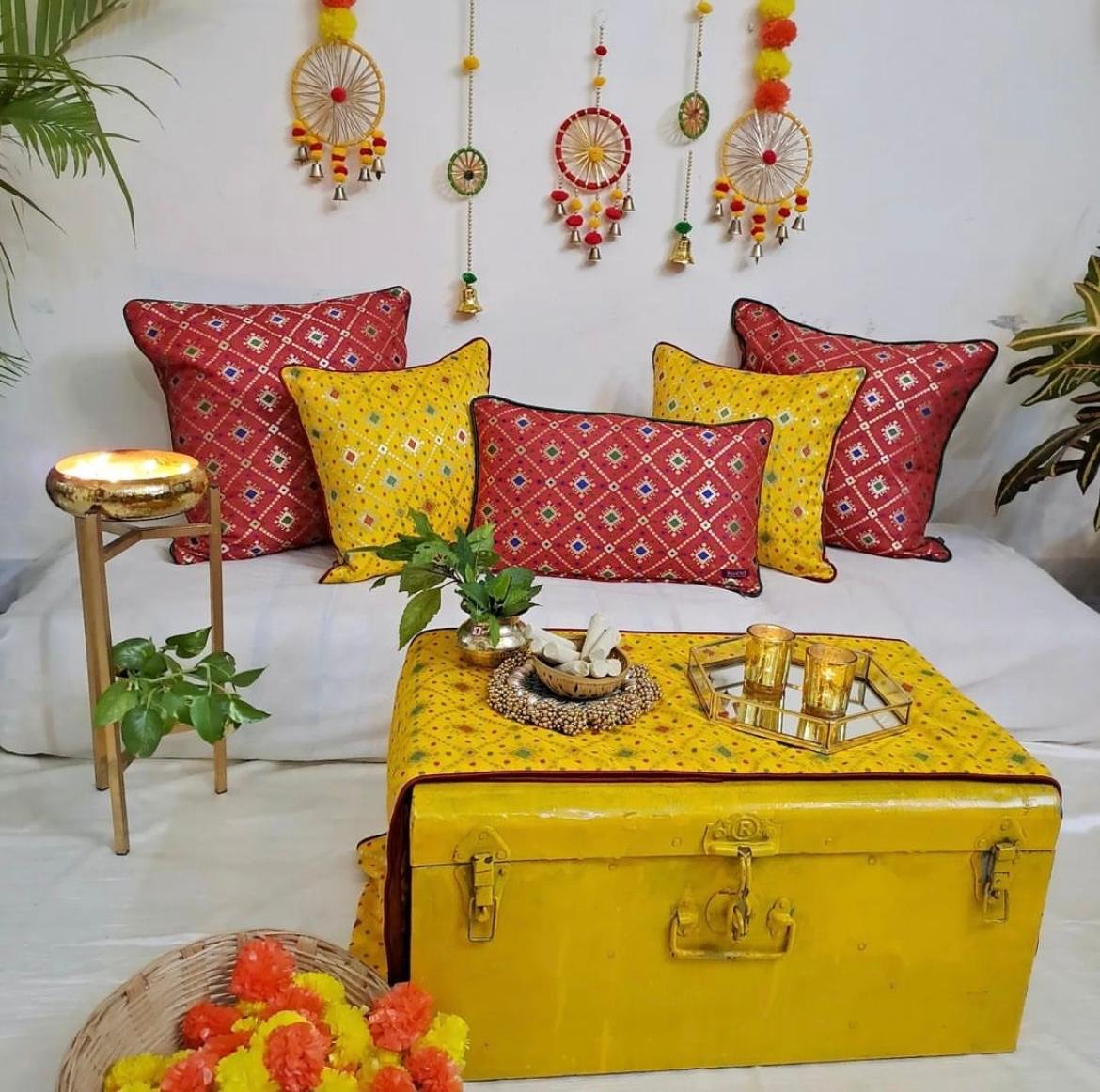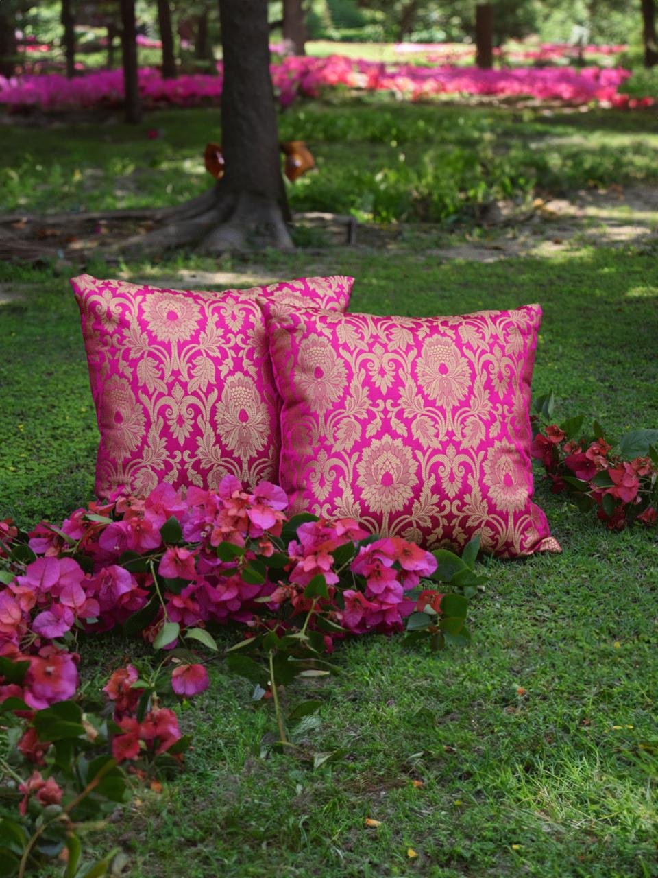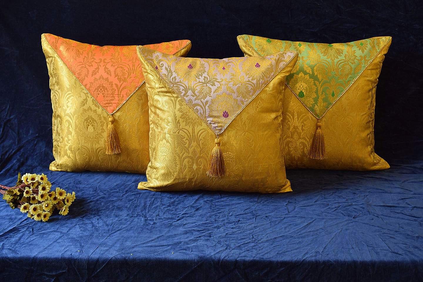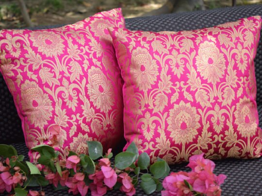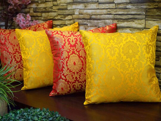 ₹2,100.00 – ₹2,470.00MUGHAL BANARASI Brocade Cushion Covers Combo (Red & Yellow)