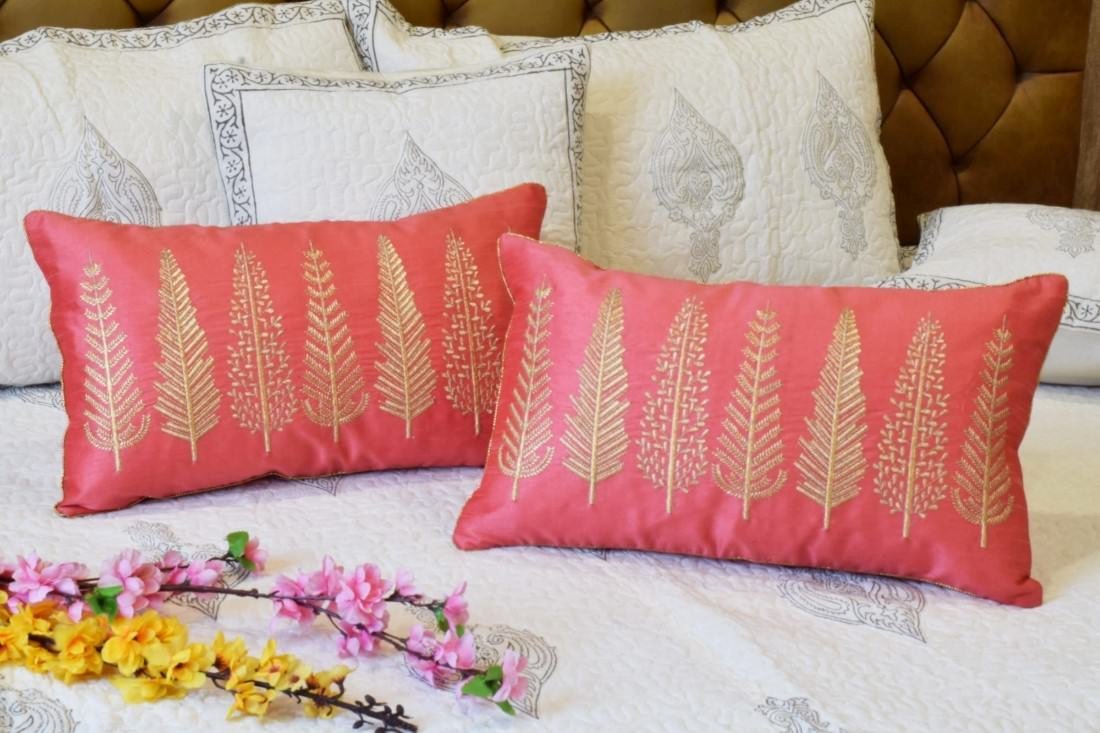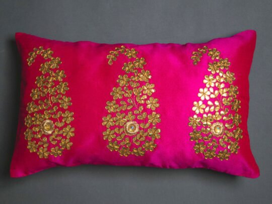 ₹800.00 – ₹2,895.00Magenta & Golden Paisley Leaf Rectangular Cushion Cover