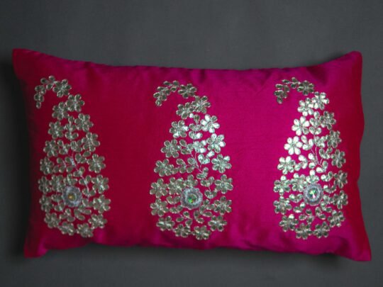 ₹2,100.00 – ₹2,470.00Magenta & Silver Paisley Leaf Rectangular Cushion Cover
